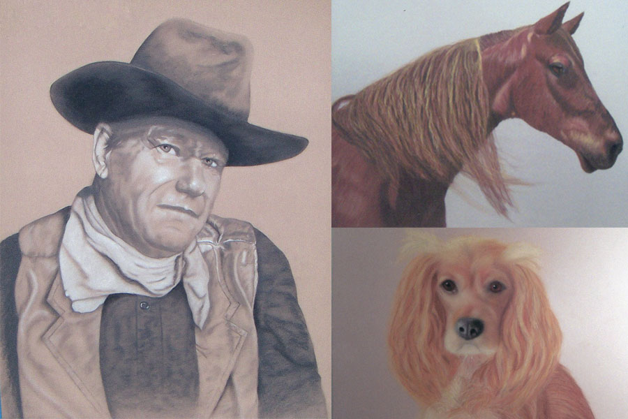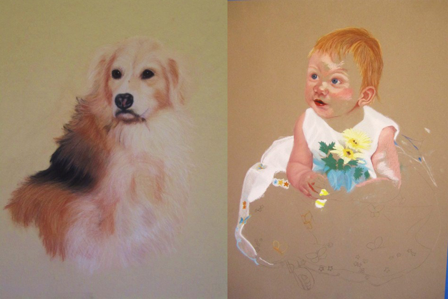 Exact likeness, Custom commissioned portraits in Human and Animal form. Charcoal, Pastel and Oil Paint mediums used. Framing and Matting