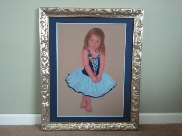 Four year old Mallory, i.e. nicknamed Mallorina Ballerina, was my first full body color creation. Her likeness was produced using pastels and measures 24x36 inches, my largest portrait thus far.